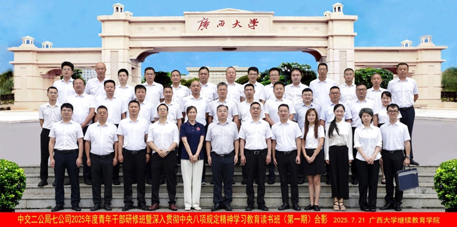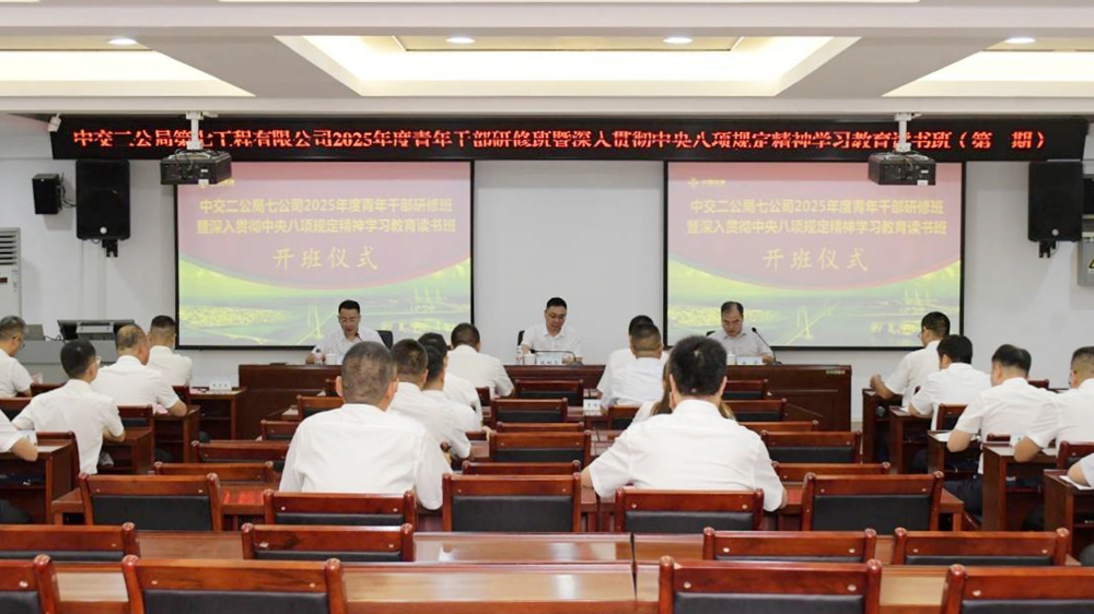 2025年7月21日,中交二公局第七工程有限公司2025年度青年干部研修班暨深入贯彻中央八项规定精神学习教育读书班(第一期)在天博买球开班。中交二公局第七工程有限公司党委书记、执行董事张根合,天博买球副院长徐华出席开班式并讲话,中交二公局第七工程有限公司人力资源部经理孙超主持开班式。