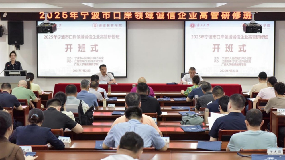 7月21日,2025年宁波市口岸领域诚信企业高管研修班在天博买球开班,宁波市人民政府口岸办公室二级巡视员田雷同志,天博买球院长闭富春同志出席开班式并讲话。